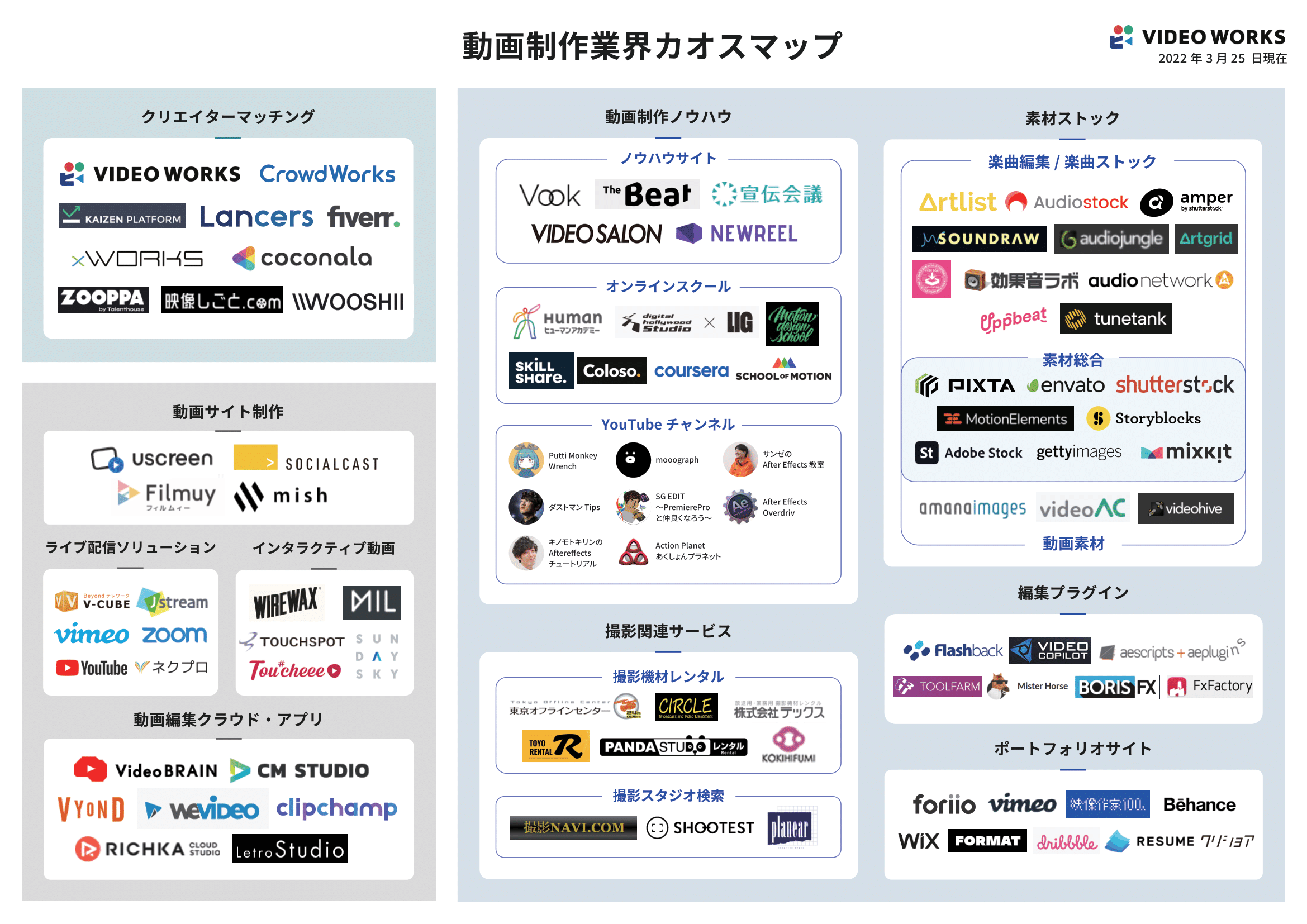 クリエイター支持の高い動画制作サービスを調査、クリエイター目線の「動画制作業界カオスマップ2022」を発表