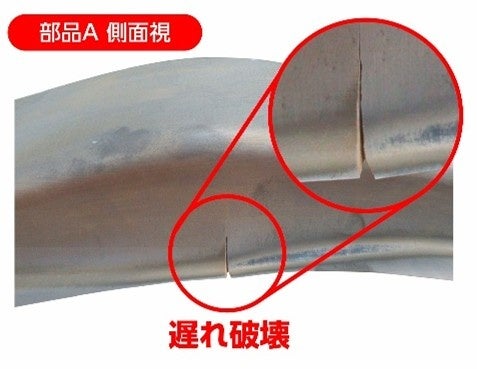 遅れ破壊とは、高強度鋼板の成形品において、成形直後には問題が見られなくても、時間の経過とともに腐食環境下で残留応力が存在する部位などから亀裂が発生する破壊現象で、量産後の品質リスクとして重要な課題です。「遅れ破壊予測技術」は、特に高強度鋼板の成形品の切断端面に発生が懸念される遅れ破壊の危険度を予測する技術です。