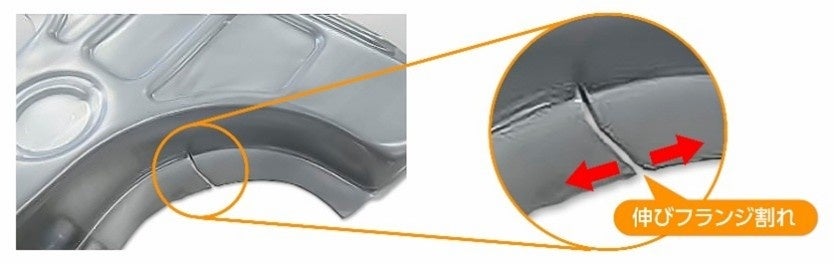 伸びフランジ割れとは材料端部で大きく伸ばされることにより発生する割れで、従来の成形限界評価などでは予測精度は不十分でした。「伸びフランジ割れ予測技術」は、「ひずみ勾配」という指標を用いることで成形品の端部から生じる成形不良を高精度に予測する技術で、塑性加工学会の平成29年度技術開発賞を受賞するなど高い評価を受けています。