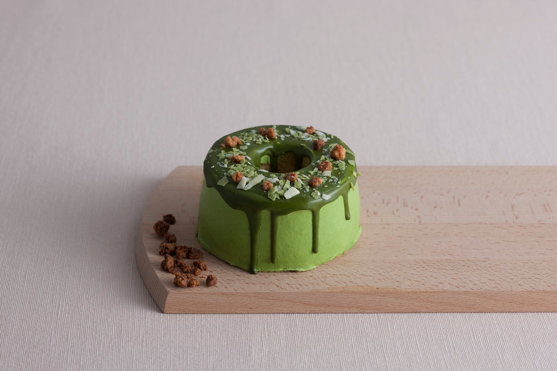 おうちスイーツとして人気のシフォンケーキに、京都らしさを存分に味わえる抹茶が新登場。米油を使用したしっとりフワフワの生地に、独自ブレンドしたほろ苦い宇治抹茶入りソースをかけました。「とろっと」ソースが垂れる見た目は、SNSにも映えます。