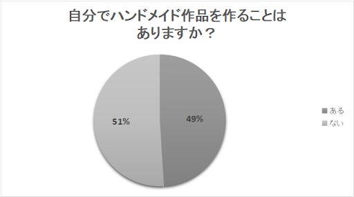 次に、「自分でハンドメイド作品を作ることがありますか?」というアンケートも行ってみました。結果は、「ある」と回答した人が49%、「ない」と回答した人が51%と大差はありませんでした。