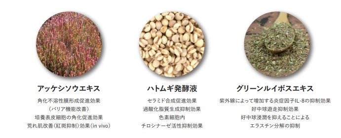 保湿の機能性を有する3つの天然由来機能性成分について、これまで知られていなかった新たな作用ポイントを見出し、新たな切り口で皮膚の乾燥の悩みを解決する方法を提供致します。