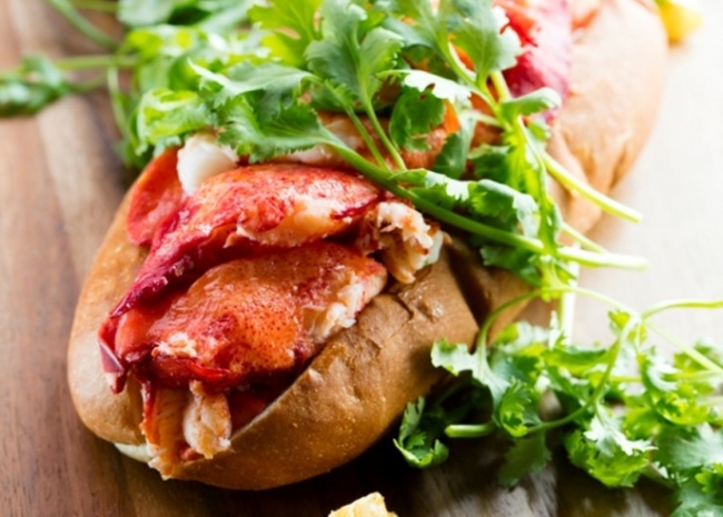 西海岸のテイクアウトサンドで人気のロブスターロール。パクチーを山盛りにトッピングし、メキシカンテイストに仕上げました。