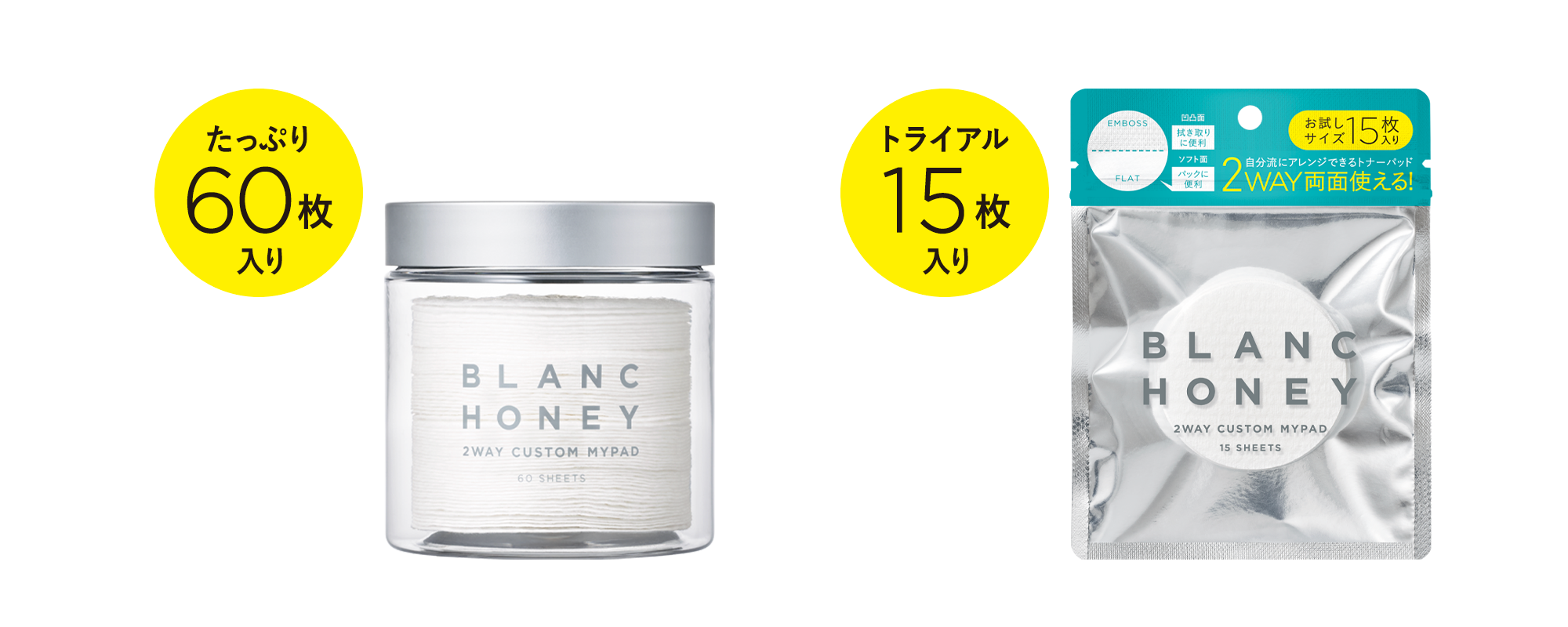 ブランハニーの拭き取りローションや美容液を染み込ませることで自分だけのオリジナルのトナーパッドが作れます。黒ずみ*²・角栓の拭き取りケア、乾燥毛穴の保湿ケア、朝の拭き取り洗顔など様々なシーンでご使用いただけます。