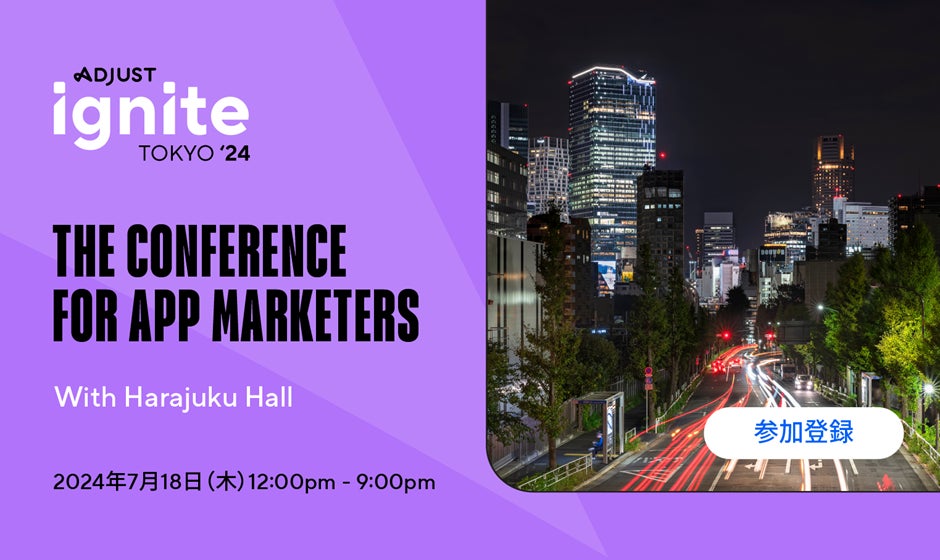 モバイルアプリの計測・分析ツールを提供するAdjust(本社:独・ベルリン、CEO:サイモン・デュサール、日本ゼネラルマネージャー:佐々直紀)は、世界中のアプリマーケターに最新情報をお届けするアプリマーケティングカンファレンス「Adjust Ignite Tokyo 2024」を7月18日(木)に開催いたします。2023年7月に東京で初開催となったAdjust Igniteは大きな反響を受け、2024年には世界で新しい都市を追加し、内容やテーマも進化させて開催いたします。