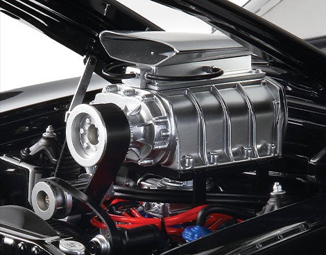 ボディ、エンジンをはじめ、各部にダイキャストパーツを多数採用した重量感溢れるモデルです。4輪独立サスペンションやデフ、ギアなどもすべて実車同様に再現。ボディの塗装も実車同様の塗り分けがされています。