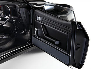 ドアウインドウは、実車と同様にドア内張のハンドルを回すことで上下に開閉します。また、ステアリングホイールを切るとフロントタイヤが連動して左右に動きます。