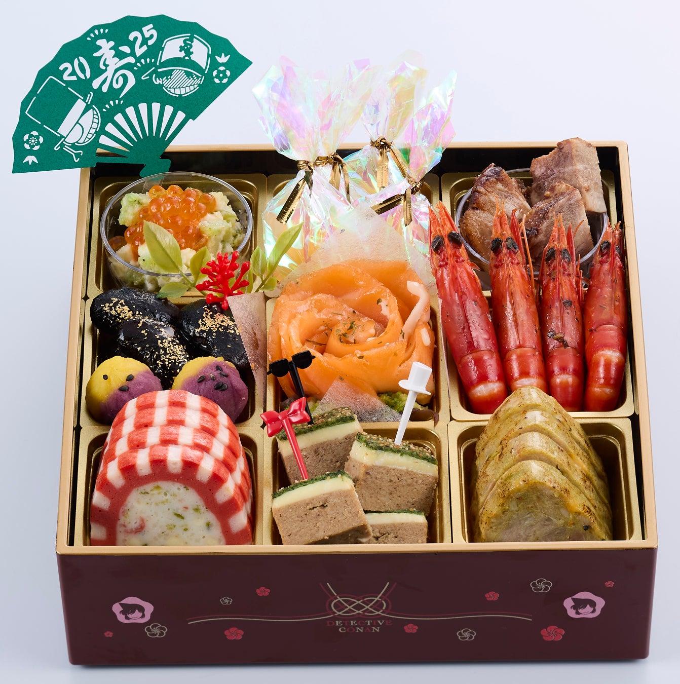 一の重は伝統的な和のおせちにオリジナルのモチーフをちりばめ、二の重は『名探偵コナン』の物語と食材の出会いを楽しむ、女性やお子様も大好きな洋風仕立ての献立に。『名探偵コナン』の魅力を存分に楽しめる見た目だけでなく、素材から調理法まで、随所にこだわりました。