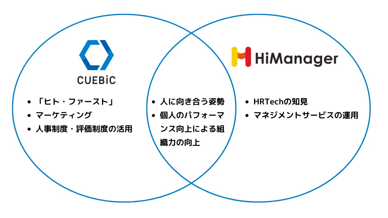 キュービックは、ユーザーやともに事業を進める協業企業先、その他多くのステークホルダーと正面から向き合う企業としてコア・バリュー「ヒト・ファースト」を掲げ、ヒトの「インサイト(深層心理)」の獲得に挑み続けています。社内においてもヒトとの向き合い方を重視し、Great Place to Work®︎やベストモチベーションカンパニーアワードなど、メンバーの働きがいを評価する賞を受賞してまいりました。 一方ハイマネージャーは、心理的安全性やエンゲージメントの向上をパーパスとして掲げ、自社で開発した『HiManager』の運営において、HRTechの専門性を発揮しています。「ヒトに向き合い、相手を考えぬく姿勢」および「個人の能力やモチベーションを引き出して組織のパフォーマンス向上を目指すマネジメント手法を重視する経営思想」の重なりをきっかけとして、今回のグループジョインに至りました。