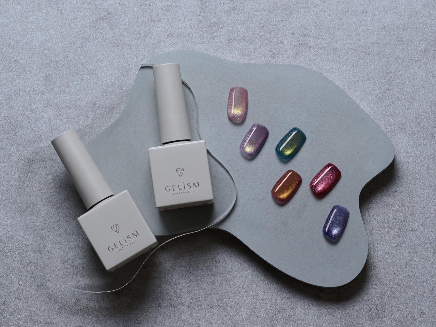 2024年2月に発売した『GELiSM』マグネットジェル1stシリーズは、宝石のような美しい輝きと、サロン級の上質な仕上がりを自宅で楽しめる手軽さが話題となり、初回入荷分が即完売するカラーも出るなど大きな反響を呼びました。そんなGELiSMから2ndシリーズを発売します。今回の新色は、シルクのような繊細な煌めきと、ぷるんとした立体感が楽しめる4色のコレクションです。