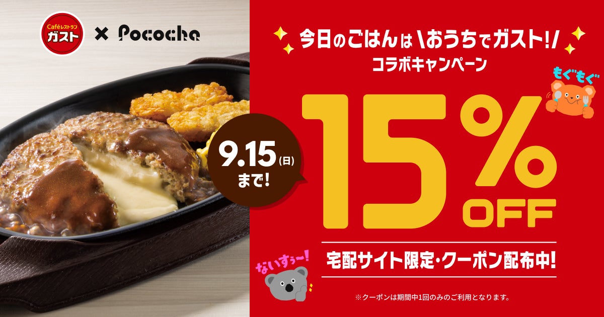 株式会社ディー・エヌ・エー(本社:東京都渋谷区、代表取締役社長兼CEO:岡村 信悟)が運営するライブコミュニケーションアプリ「Pococha(ポコチャ)」は、株式会社すかいらーくレストランツ(本社・東京都武蔵野市、代表取締役社長 中島 尚志)が運営するファミリーレストランチェーン「ガスト」と初のコラボレーションとなる「今日のごはんはおうちでガスト!コラボキャンペーン」を8月26日〜9月15日の期間で実施します。