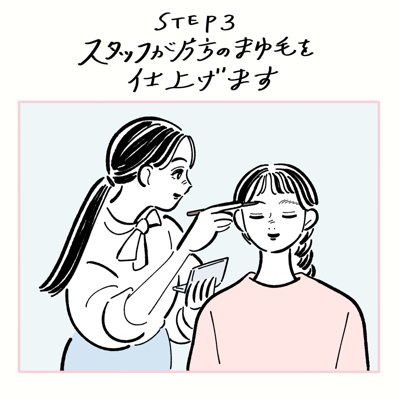 当日は、あなたの“まゆ毛”に関するお悩みや、理想の”まゆ毛”などを、お話をお伺いしながら、実際に眉メイクを行います。