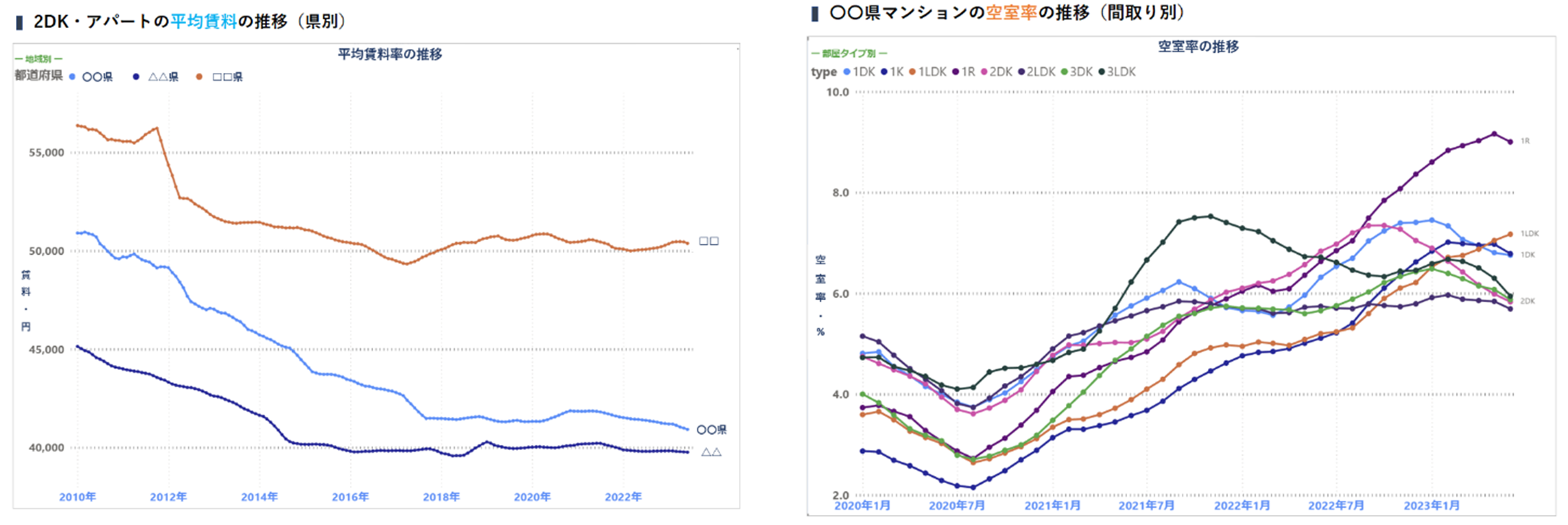 ・[平均賃料]、[空室率] 2種類の月次時系列データ