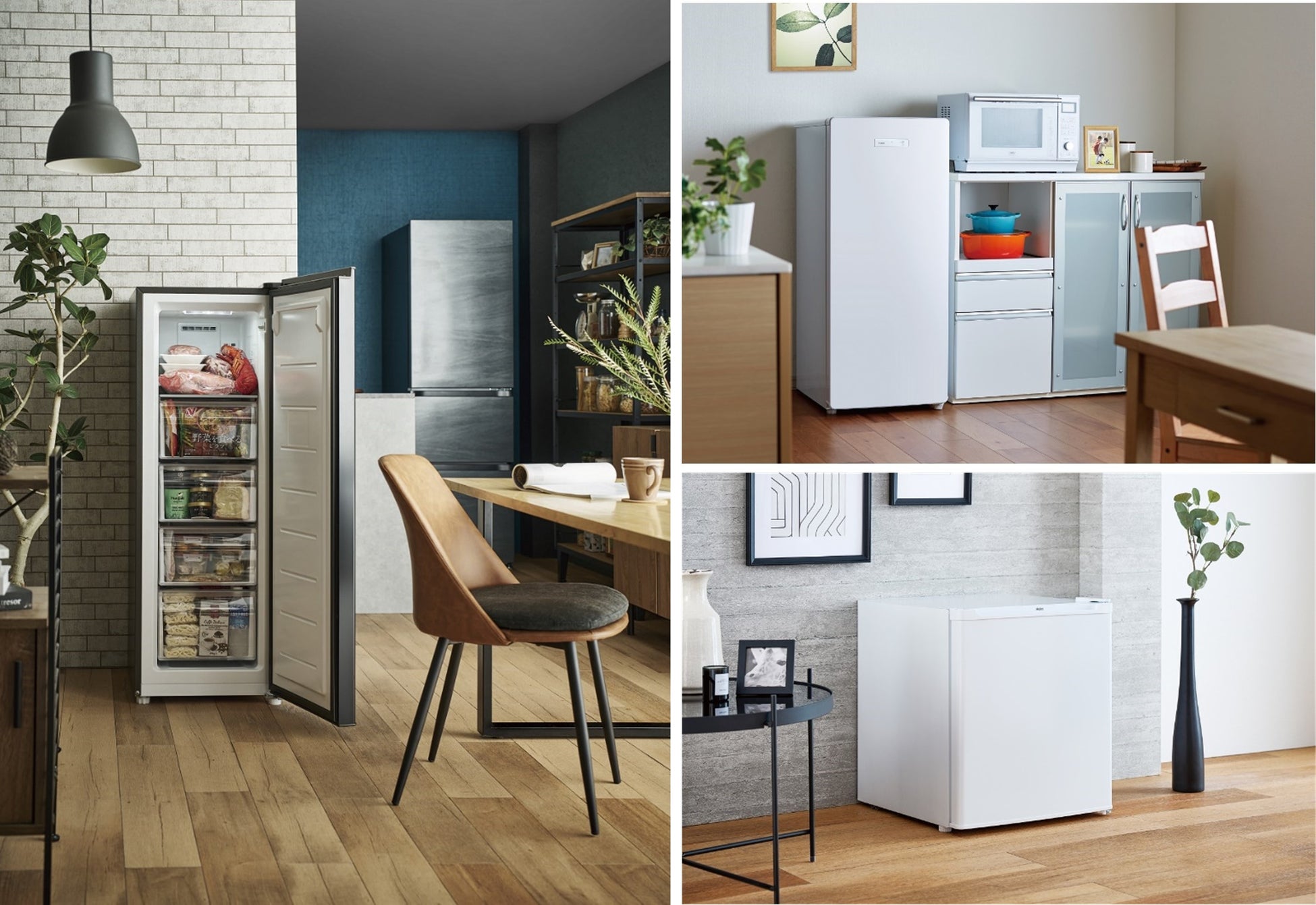 ・ハイアール:セカンド冷凍庫体験会(107L前開き式冷凍庫:左、138L前開き式冷凍庫:右上、33L前開き式冷凍庫:右下)
