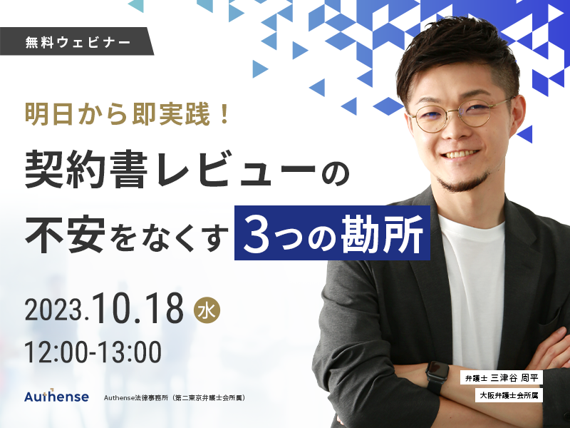 【無料ウェビナー開催2023.10.18】明日から即実践!契約書レビューの不安をなくす3つの勘所|Authense法律事務所