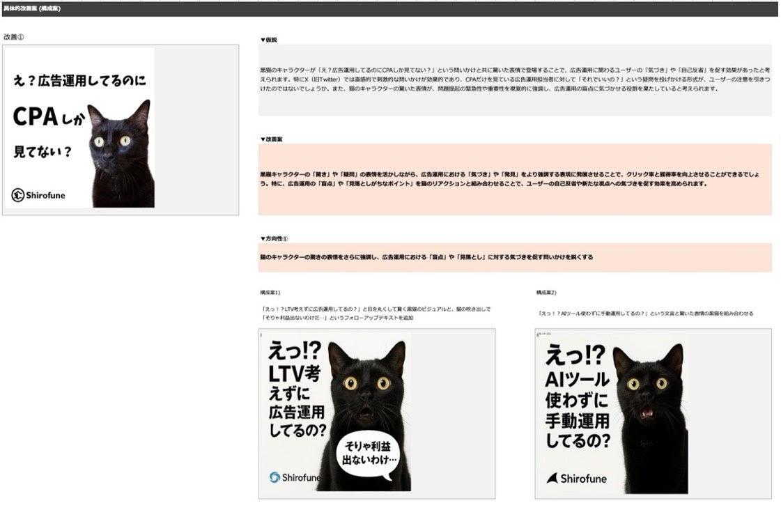 クリエイティブの成功・失敗要因を分析し、改善案から構成案までを自動出力が可能に