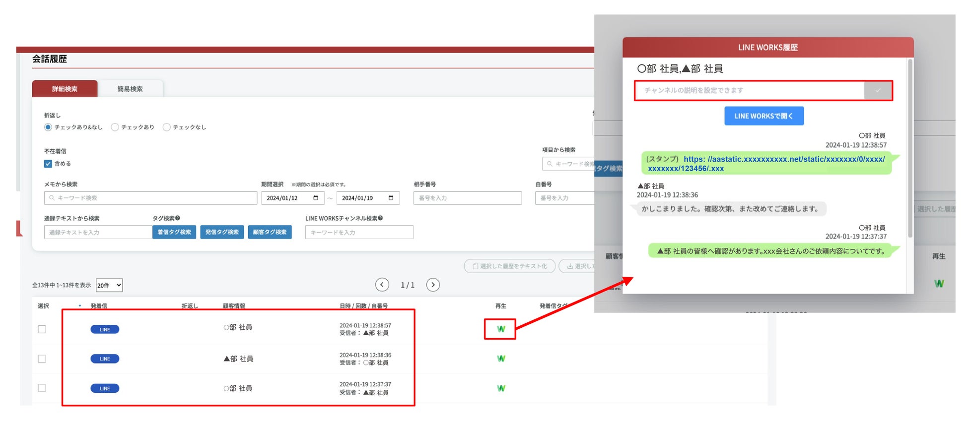 また、履歴上に表示されるWアイコンをクリックすることで、トーク内容を閲覧できます。