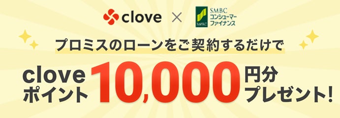 また、Cloveを通じてプロミスをはじめてご契約いただくお客さまには、Cloveポイント10,000円分をプレゼントいたします。