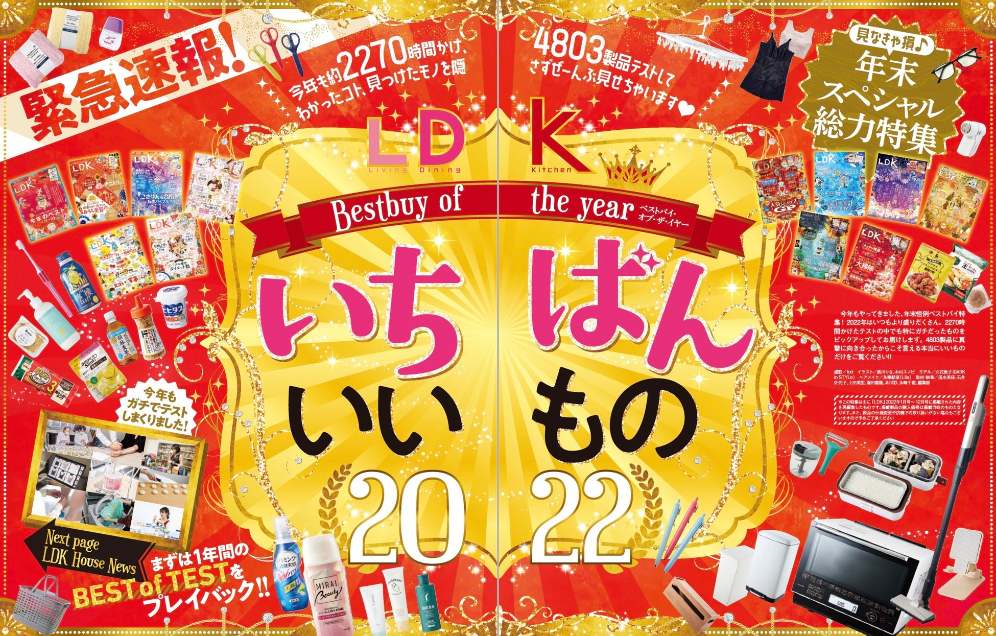 いちばんいいもの2022を大発表!4803製品を本気でテストした中で、キッチンツールやスキンケアなど各部門の年間1位に輝いたのは…【LDK 2023年1月号】