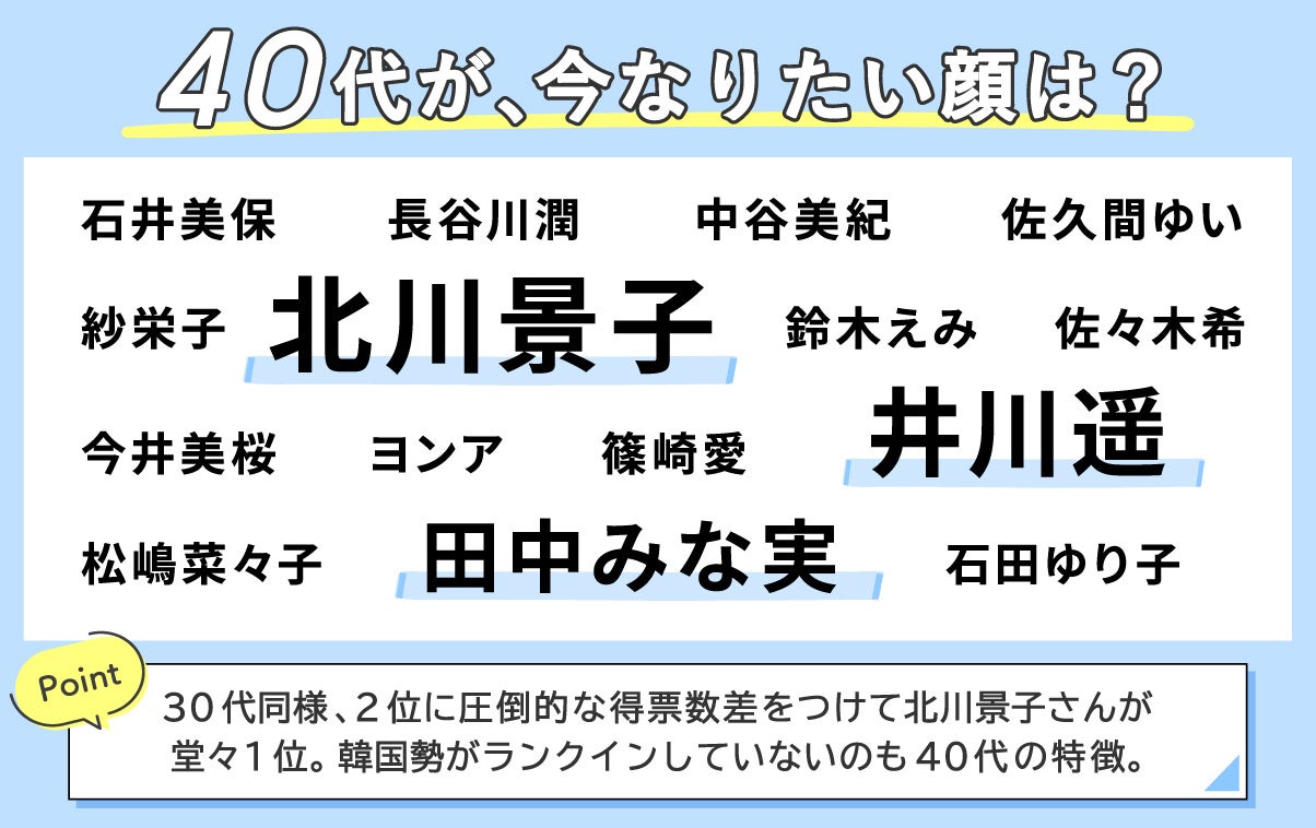 1、韓国勢が台頭!今、なりたい顔を年代別に調査