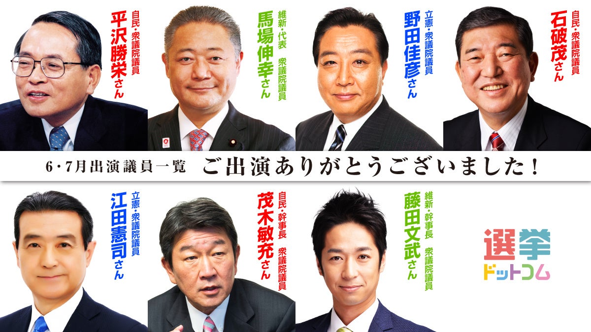 「選挙ドットコムちゃんねる」政党別出演ゲストについてのお知らせ