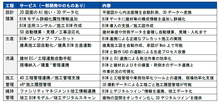 「設計積算」や「施工管理」は勿論、各プロセス別やプロセスを繋ぐ課題やご要望に応じて、最適なサービスを提供します。詳細はお問い合せください。