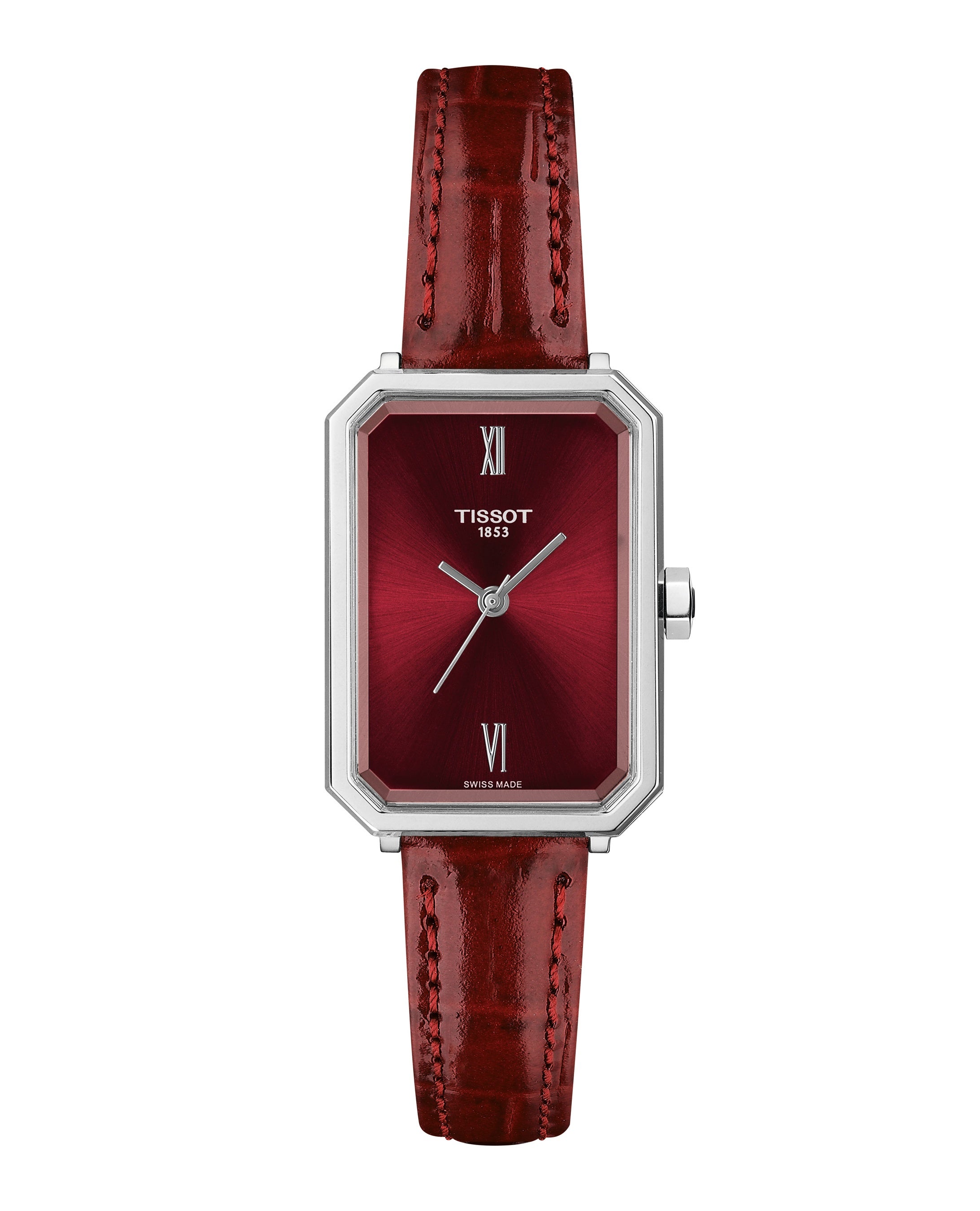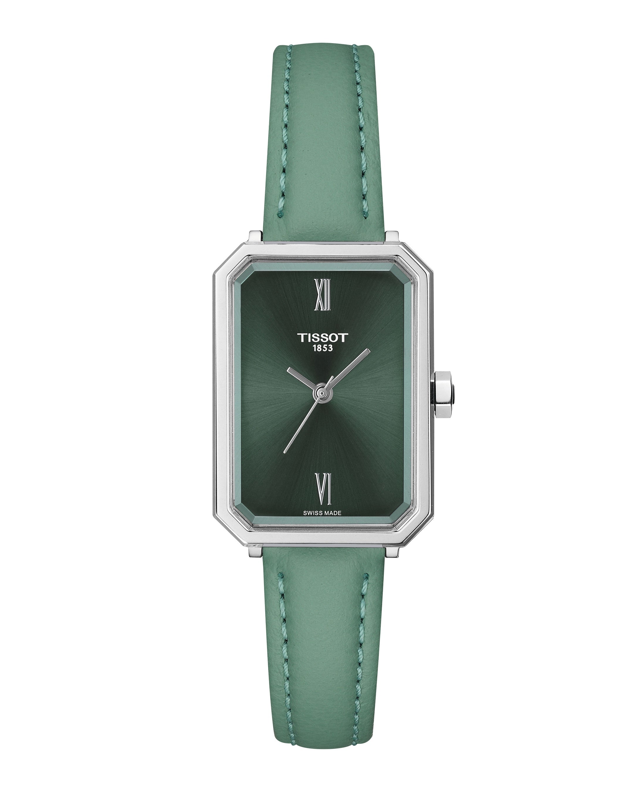 さらに、グリーン(T160.110.16.093.00)とレッド(T160.110.16.423.00)の2モデルには、光を受けてきらめくサンレイ仕上げの文字盤と、それぞれの色調に合わせたレザーストラップが手元に個性を添えます。