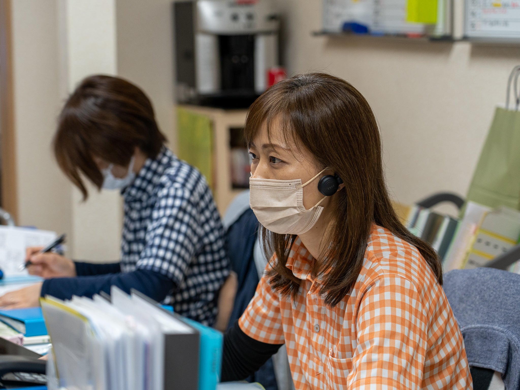 事務所では隣に電話対応をしているスタッフがいた場合、音声で呼びかけてしまうと声が被ってしまいますのでBONX WORKではなく、あえてLINE WORKSのテキスト読み上げ機能を使って現場に指示を出しています。また病院など公共の場でも音声での通信は周りの目がありますので、LINE WORKSで文章を流しBONX WORKで現場へ指示出しをしています。