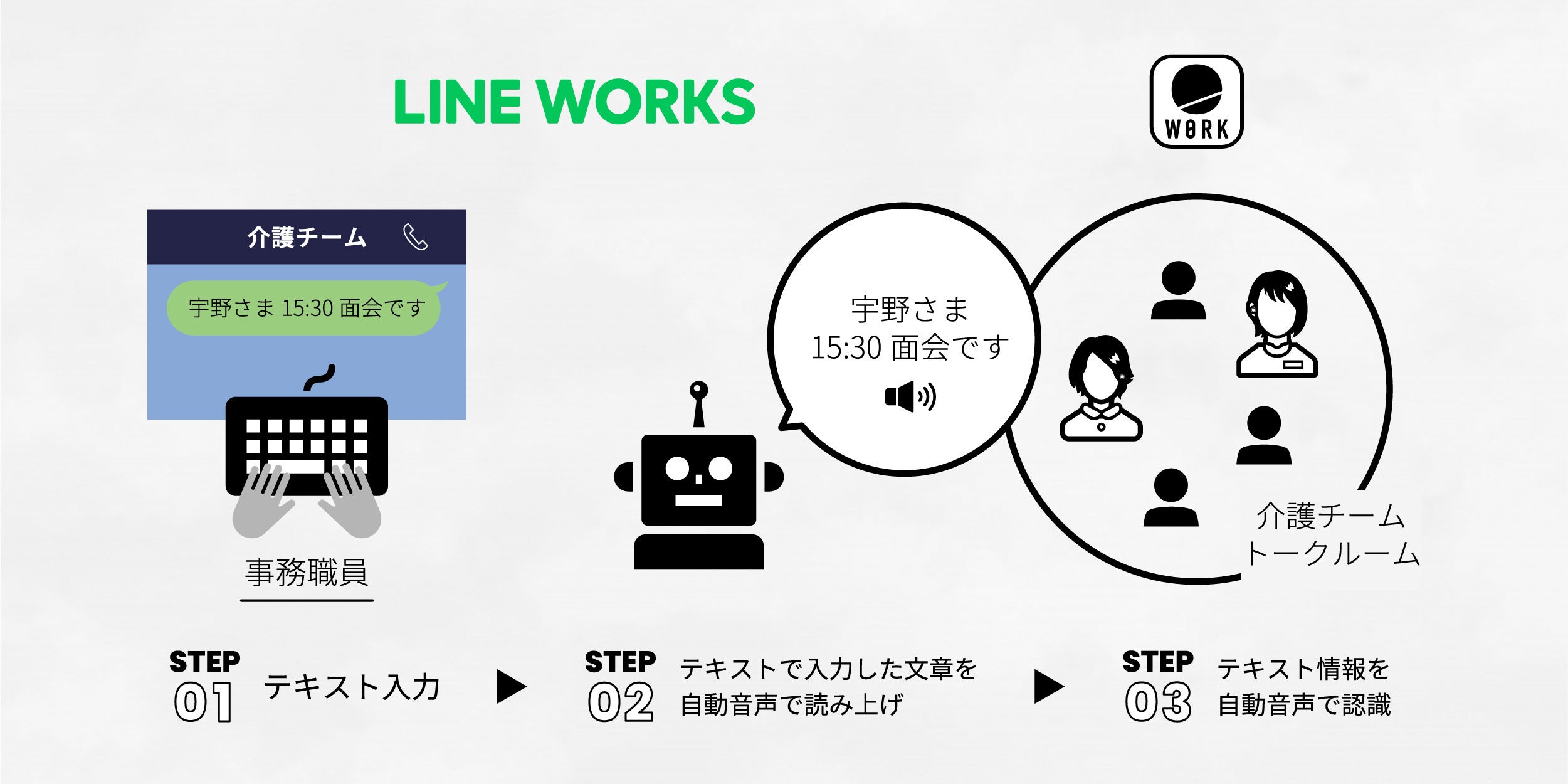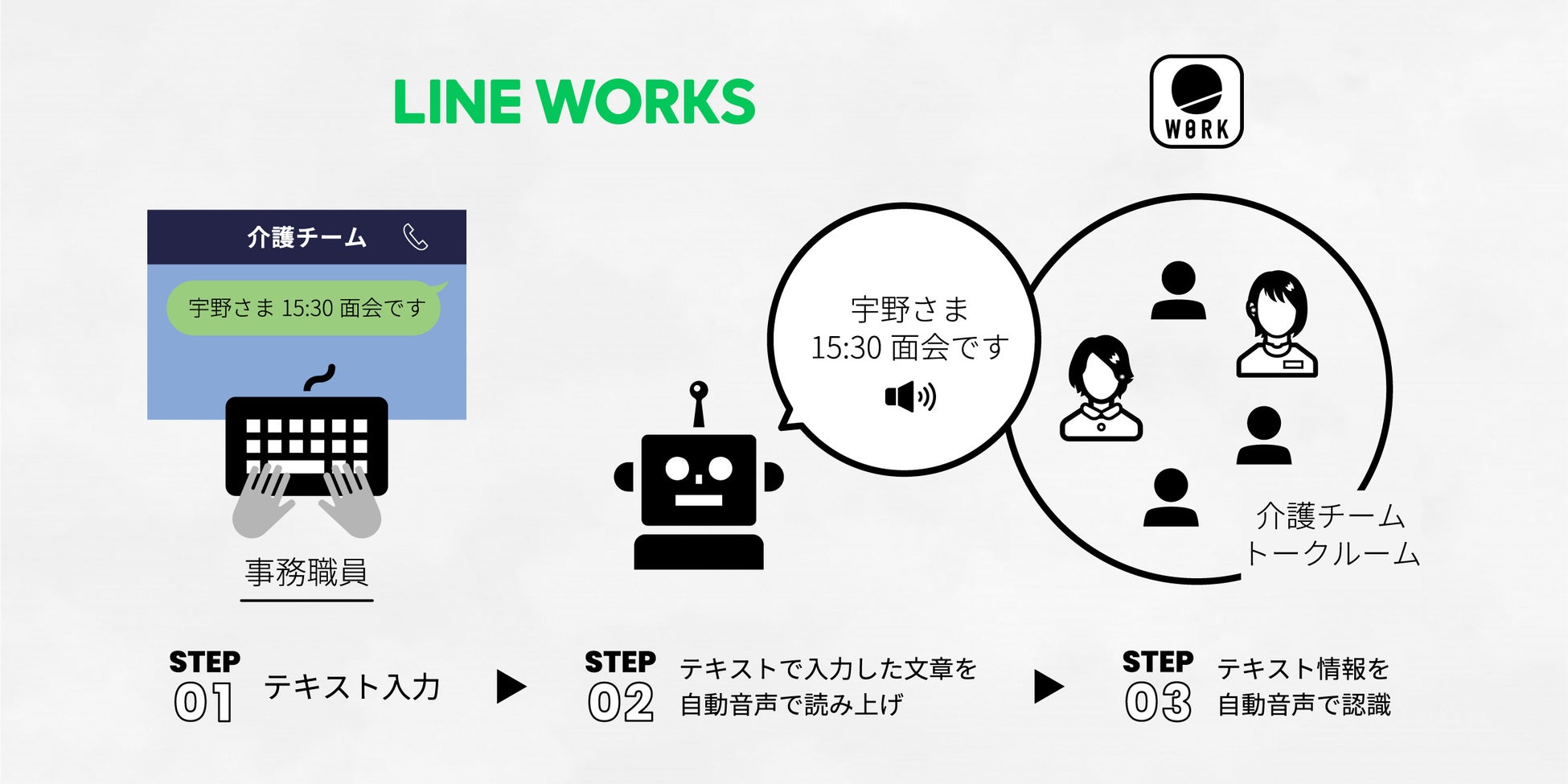 BONX WORKのトークルーム内でLINE WORKSのテキストメッセージが自動で読み上げられ、音声情報として取得が可能に