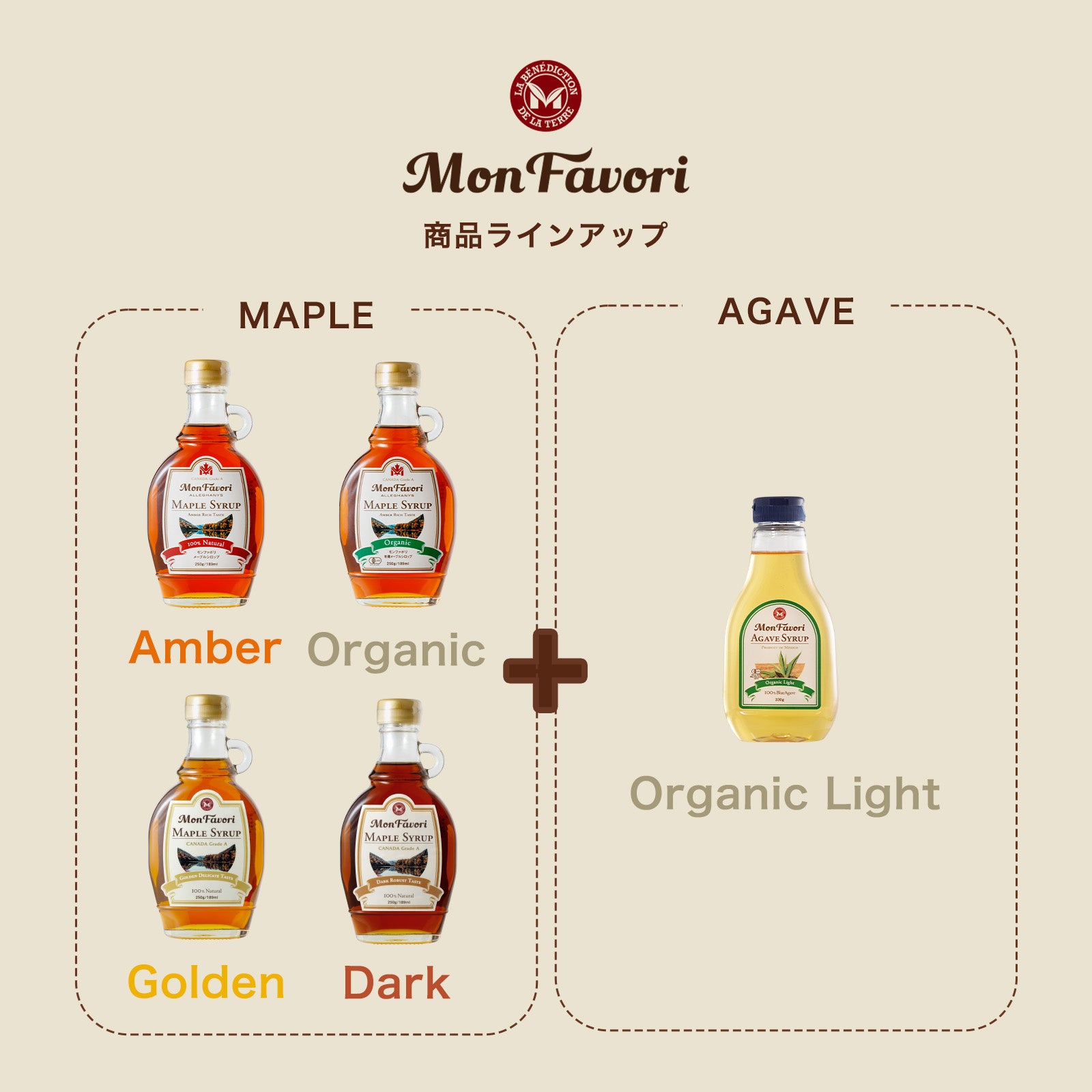 今回「Mon Favori(モンファボリ)」には新たに『オーガニックアガベシロップ』が仲間入りします。体にやさしい自然由来の天然甘味料を取り揃えるブランドとして、今後も多くの方にご愛顧いただけますよう力を注いで参ります。