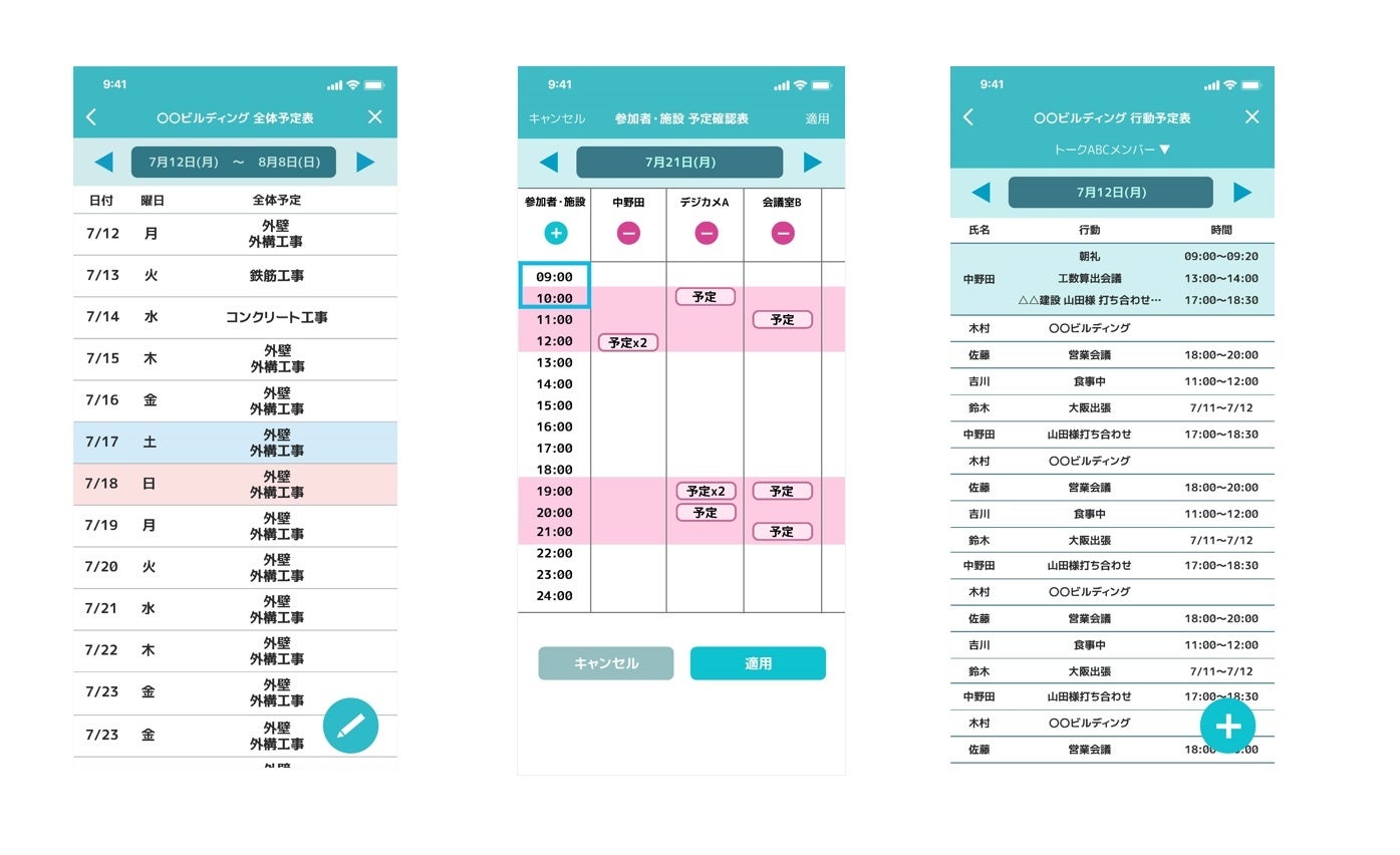 現場でよく使われているホワイトボード型の全体予定表と個人のスケジュールを融合させたスケジュールツール。会社の壁を超えて共有できるため建設業やサービス業など、複数企業でのプロジェクト管理に有効です。