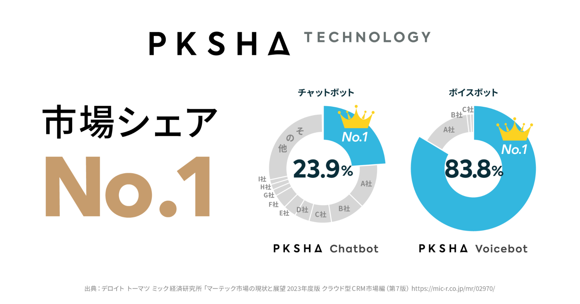 PKSHA Chatbot及びPKSHA Voicebotがデロイト トーマツ ミック経済研究所の「マーテック市場の現状と展望 2023年度版」で市場シェア1位を同時獲得