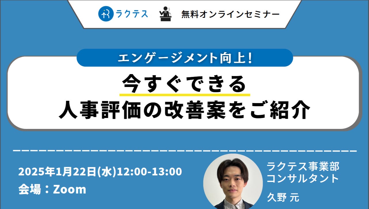 スキルチェックテスト作成システムのラクテス 1月22日にオンラインセミナー 「エンゲージメント向上!今すぐできる人事評価の改善案をご紹介」 を開催