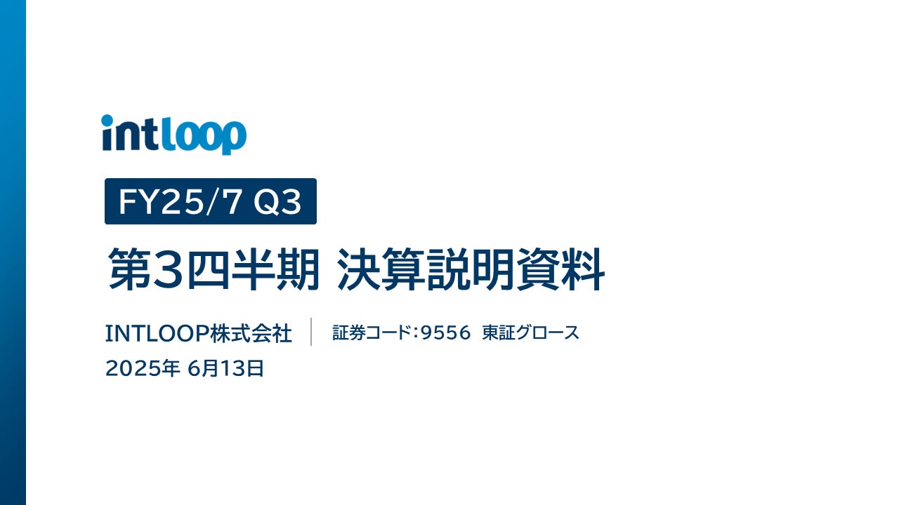 ▷INTLOOP 2025年7月期 第3四半期決算説明資料:https://www.intloop.com/ir/library/presentations/