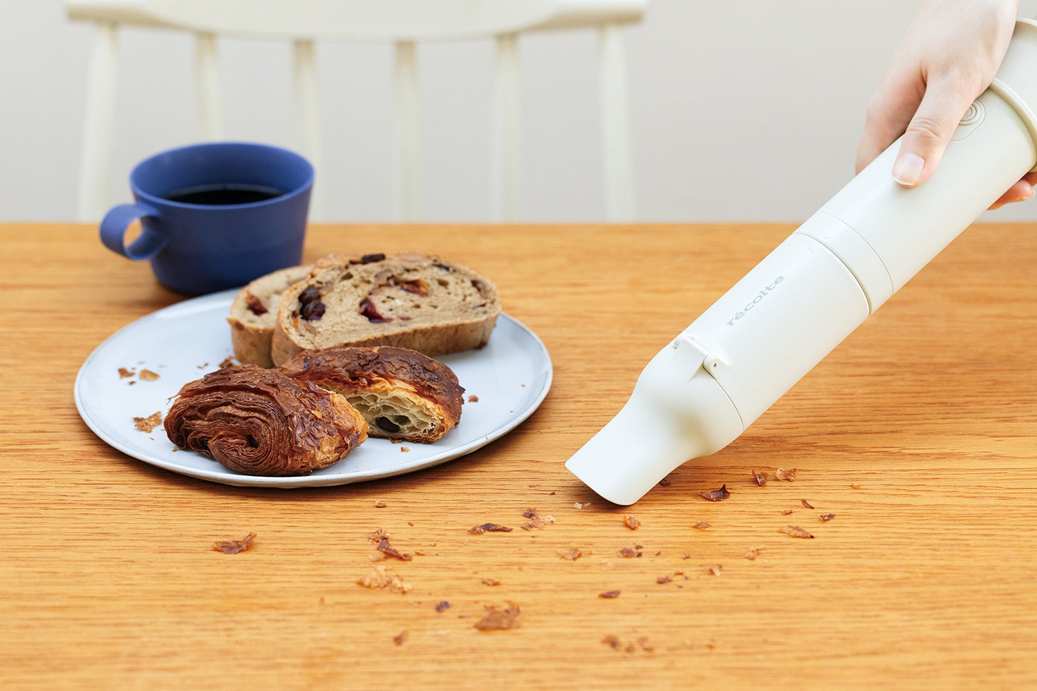 手軽にお掃除ができるハンディクリーナー。重量約490gと軽量でコードレスなので、サッと片手ですぐに使えます。パンくずなどの食べこぼしや、ペットの抜け毛など、すぐにキレイにしたいときにも便利です。