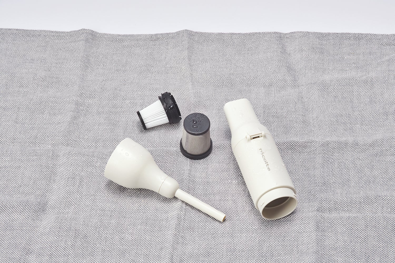 コンパクトながら、 13,000Paのパワフルな吸引力。小さいゴミもきちんとキャッチ。本体とパーツを立てられる[スタンド]でコンパクトに収納でき、そのまま充電も可能。ゴミ捨てもワンタッチで、フィルターやダストボックス、各パーツは水洗いOKなのでいつでも清潔です。