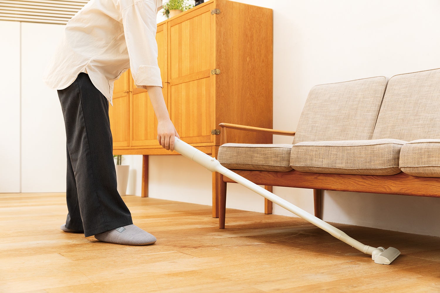 付属の[パイプ]と[ヘッドパーツ]をつければスティッククリーナーに。スリムで小回りがきくので家具の下やすき間などにもしっかり届きます。