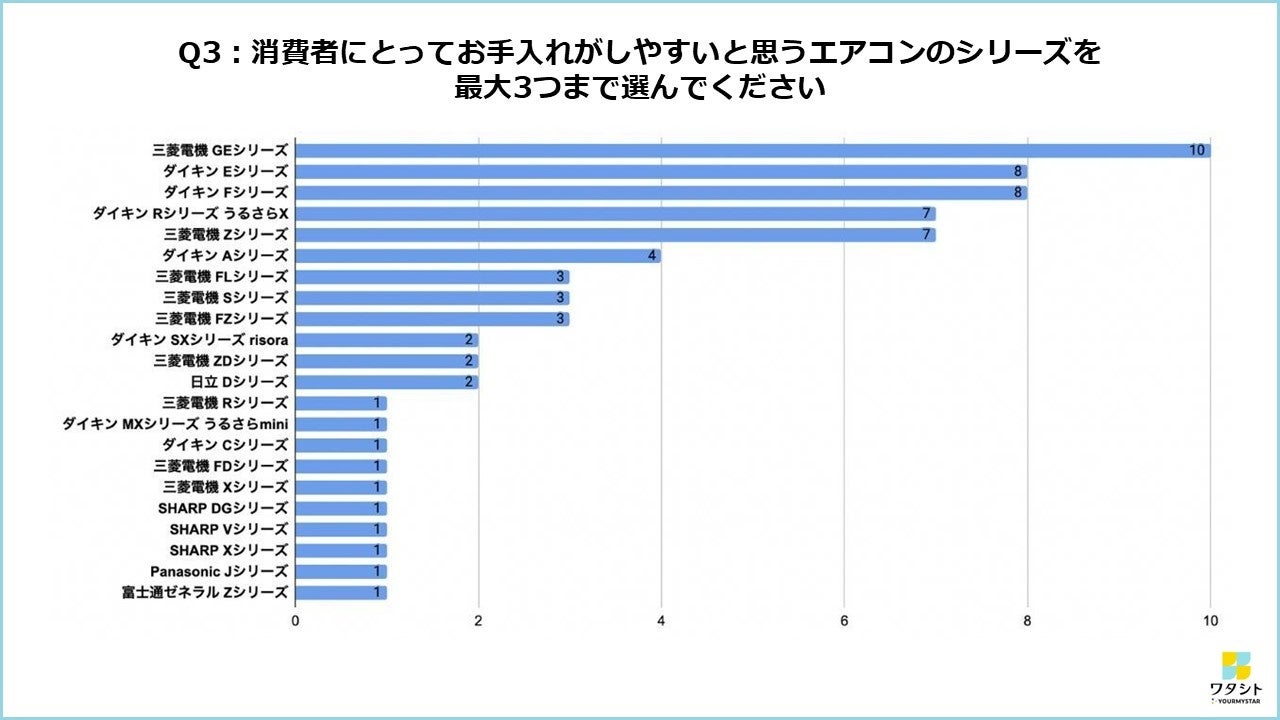 Q3:消費者にとってお手入れがしやすいと思うエアコンのシリーズを最大3つまで選んでください
