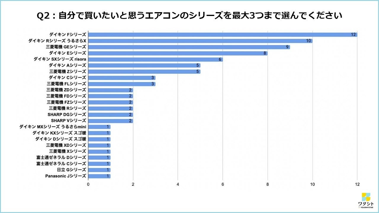 Q2:自分で買いたいと思うエアコンのシリーズを最大3つまで選んでください