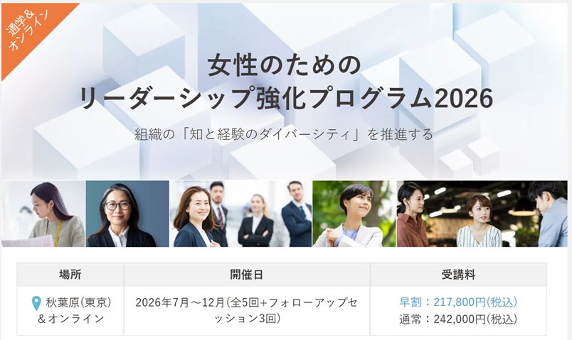 【女性のためのリーダーシップ強化プログラム2026】組織の「知と経験のダイバーシティ」を推進する公開講座を、秋葉原会場&オンラインで7月から開講!