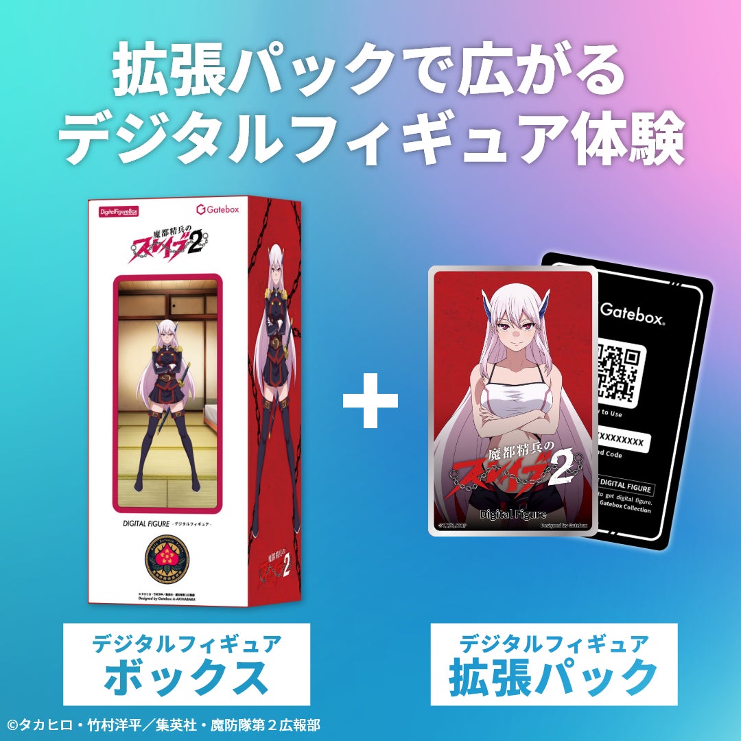 Gatebox株式会社(東京都千代田区、代表取締役 武地 実)は、現在TVアニメが絶賛放映中の人気作品「魔都精兵のスレイブ」より、羽前京香、出雲天花、山城恋の3人のデジタルフィギュアを楽しめる「デジタルフィギュアボックス 魔都精兵のスレイブ」と、追加コンテンツ「水着」「ご褒美タイマー」を含む拡張パックの予約販売を開始しました。
