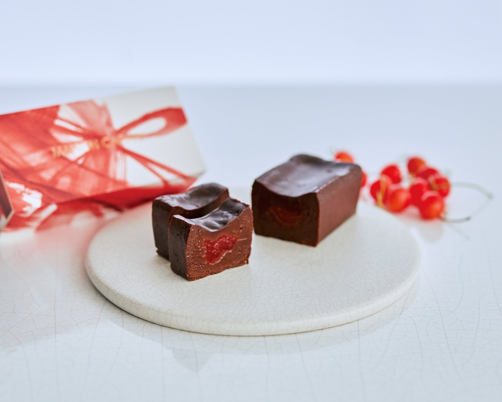 コロンビアで作り上げるオリジナルのクーベルチュールの中から、さくらんぼと相性の良い香り高いビターチョコレートを厳選。「旅するメゾン」で出会った、山形県寒河江市の大粒の佐藤錦と合わせた、ホワイトデー限定のガトーショコラです。チョコレートの濃厚さと香りを堪能できるよう、小麦粉不使用でバターと卵と合わせレアに焼き上げました。