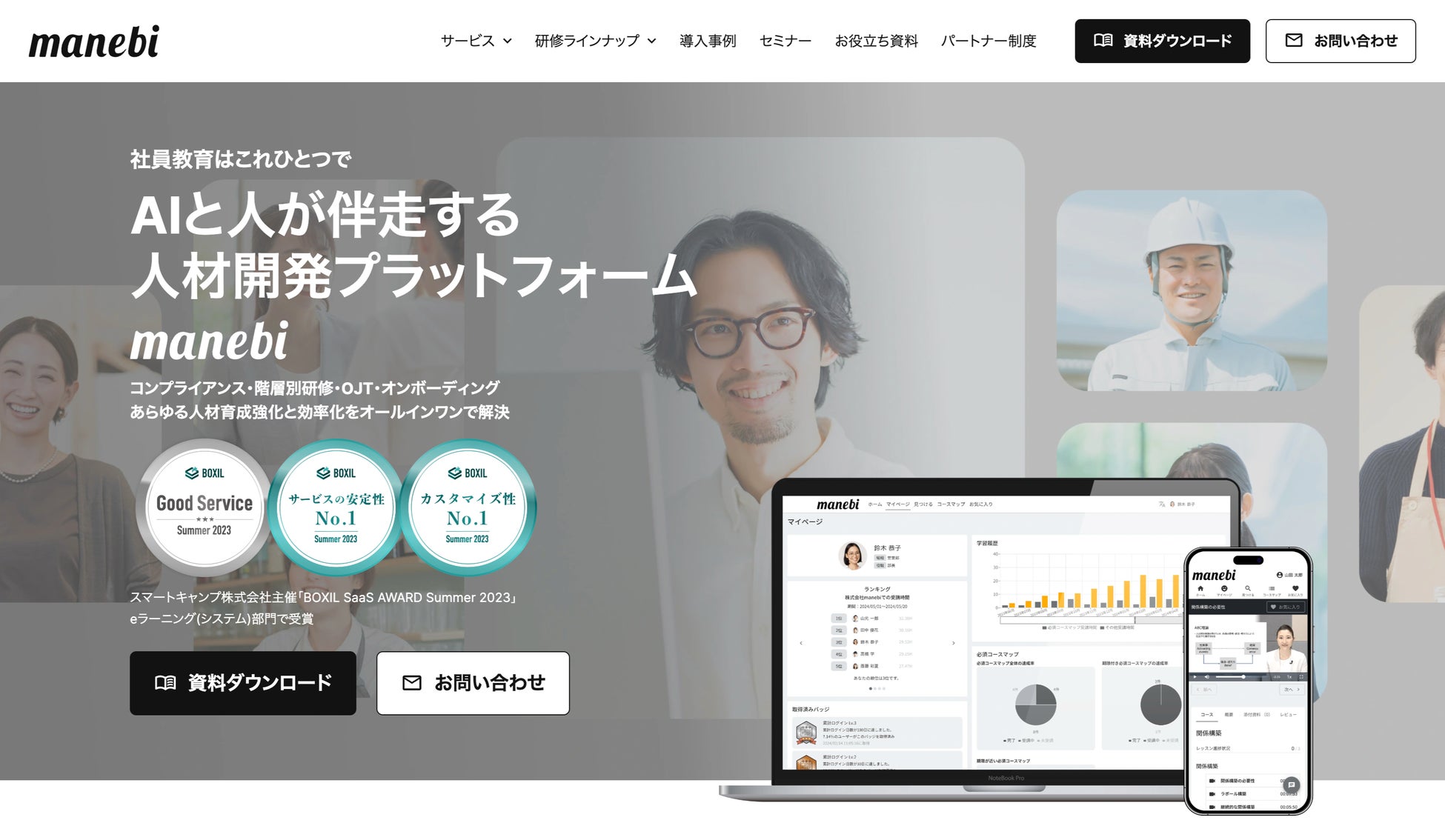 manebiは、「人生開発を当たり前の世の中に」をビジョンに掲げ、人材開発プラットフォーム「manebi」を提供。⼤企業から中小・ベンチャー企業まで幅広い規模や業種の皆さまにご利用いただき「eラーニングシステム 総合満足度No.1(※1)」を獲得。