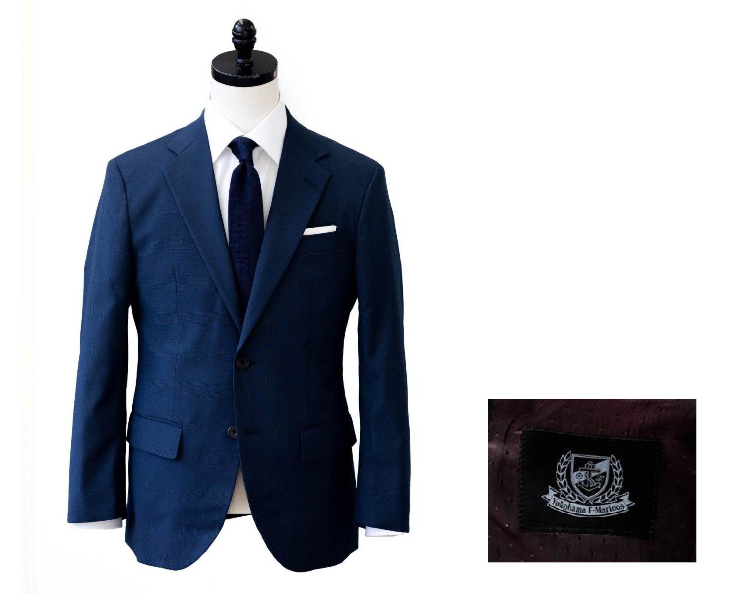 ジャケット:シングル2つ釦、「横浜F・マリノス」のエンブレムが刺繍された織ネーム付