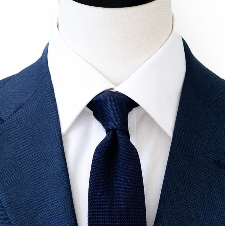 ネクタイは、ネイビーのニットタイを採用し、大剣にチームカラーのトリコロールを配しました。