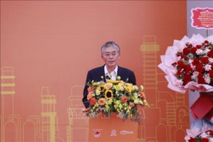 日越友好議員連盟 幹事長 林幹雄様からは「この度の木質ペレット工場は、イーレックスが、ベトナム国で進めている木質残渣を活用したバイオマス発電所の開発に先行して、建設されるものであり、ベトナム国におけるバイオマス燃料開発、技術開発の促進をより強化、促進するものであり、世界から注目されるプロジェクトとなることを確信しております。そして当然、日本政府としても東南アジアにおける先進的な脱炭素プロジェクトとして注目しています。イエンバイ省が、ベトナムで初となる大型バイオマス発電所の建設場所となることは、ベトナムにおける将来のバイオマス発電の飛躍につながっていくことになると確信しています。そして、生み出されるクリーンな電気、雇用などを通じ、イエンバイ省はもちろんベトナム全土を活性化させていくことになると思います」との祝辞を頂きました。