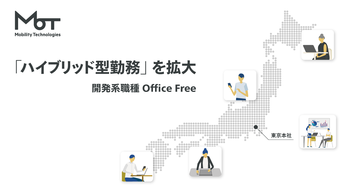 MoTではこれらの取り組みをさらに拡大し、7月からはエンジニア・PdM(プロダクトマネージャー)を中心とした開発系職種を対象に、全国どこの居住地からでも勤務が可能な「オフィスフリー制度」を開始します。