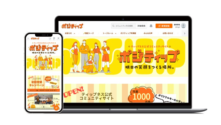 今回オープンしたコミュニティサイト「ポジティップ 明日の笑顔をつくる場所。」は、ティップネスのお店で体験したこと、毎日の生活でポジティブに感じる情報の投稿や、企画の参加から、他利用者との交流を通じて、さらに充実したティップネスライフを送ってもらうためのコミュニティサイトです。
