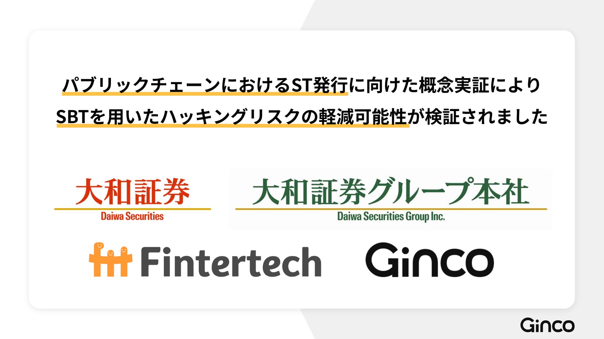 大和証券グループと株式会社Gincoにより、パブリックチェーンにおけるセキュリティトークンの発行PoCを実施しました