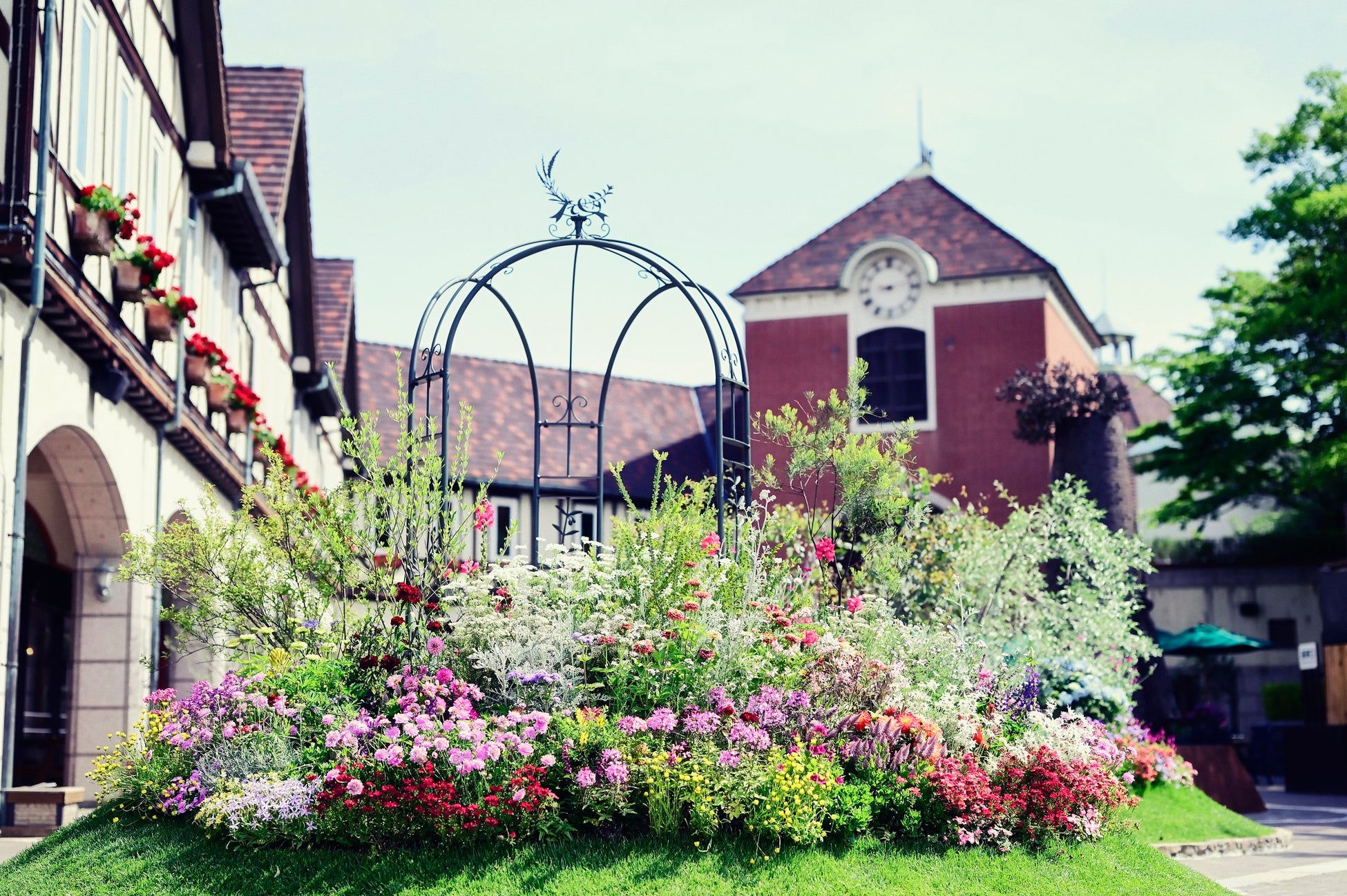 山々と青空を背景に、色とりどりのローズの香りをお楽しみいただけます。ガゼボやガーラントにつたうローズの中で、写真を撮ったり、ベンチに座ったりと思い思いに優雅にお過ごしいただけます。